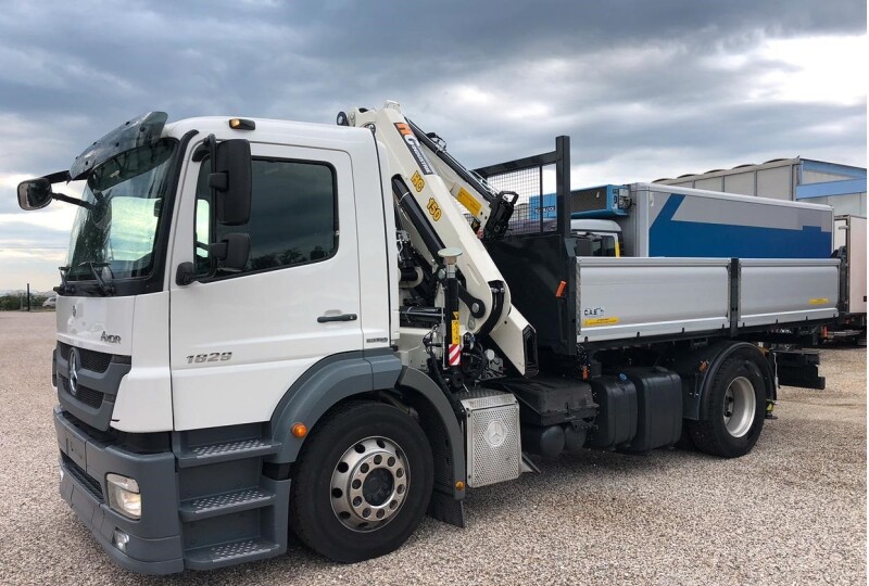 MERCEDES AXOR 18.29, 2011, EURO 5, GRU HC 150 A4 J2 4 SFILI IDRAULICI JIB 2 SFILI, 4 STABILIZZATORI, RIBALTABILE TRILATERALI ALLESTIMENTO NUOVO, OTTIMA OCCASIONE CON UNA SERIA TRATTATIVA IN SEDE